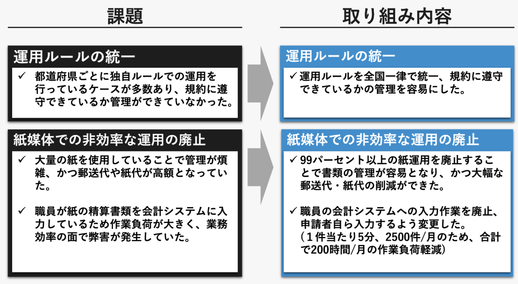 - 経費管理業務の全国統一ルールを確立し、ガバナンスを強化